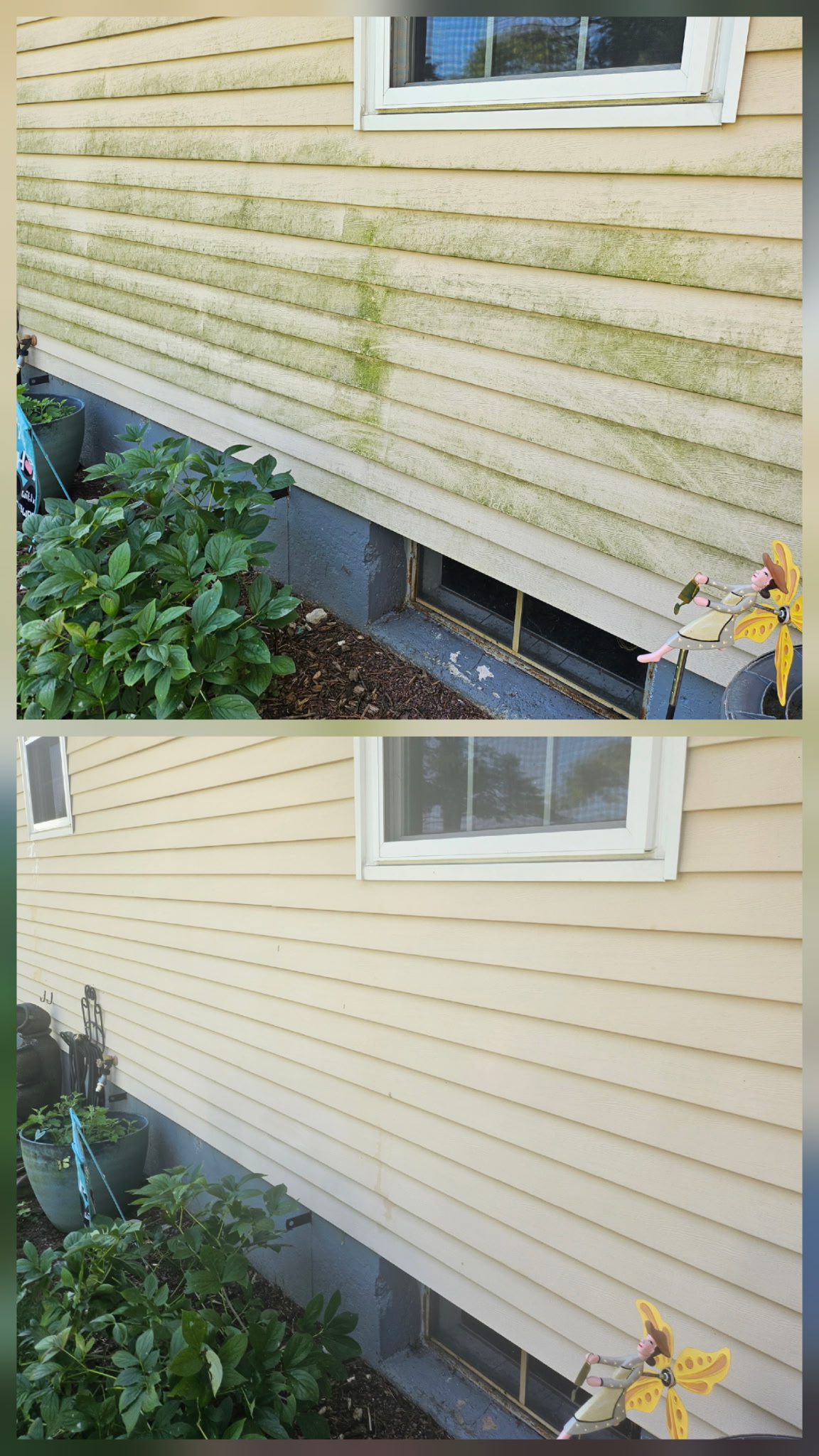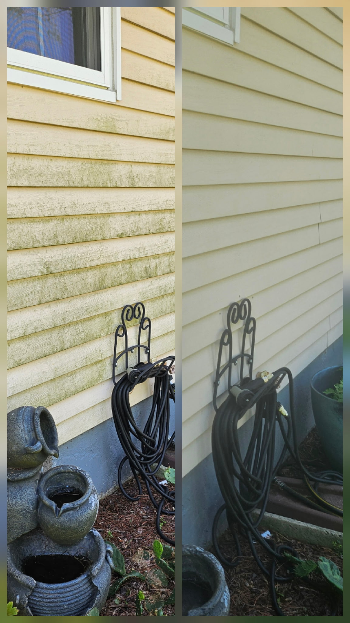Weāre thrilled to show off the results of a recent vinyl siding soft washing project in Bethlehem, PA! The homeās siding was heavily coated in green and black organic growth, severely impacting its appearance. Traditional pressure washing risks damage, so we used our specialized, low-pressure soft washing technique to safely and gently restore the surface.