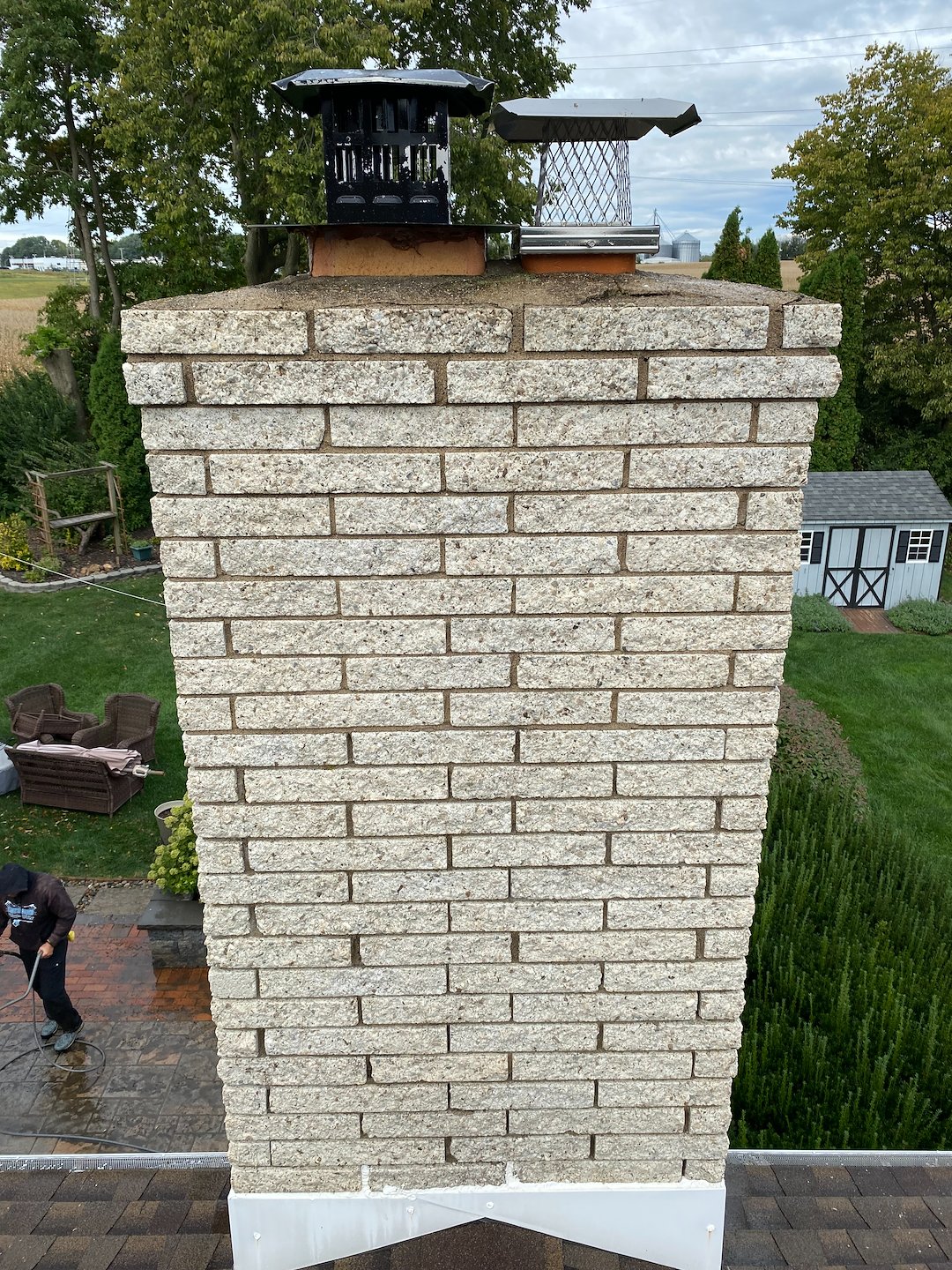 Our primary focus was a heavily stained white brick chimney. Unlike high-pressure methods, our specialized soft washing technique removed years of organic growth and soot without damaging the delicate masonry. For the best soft washing near me, Easton residents trust our gentle yet effective approach.