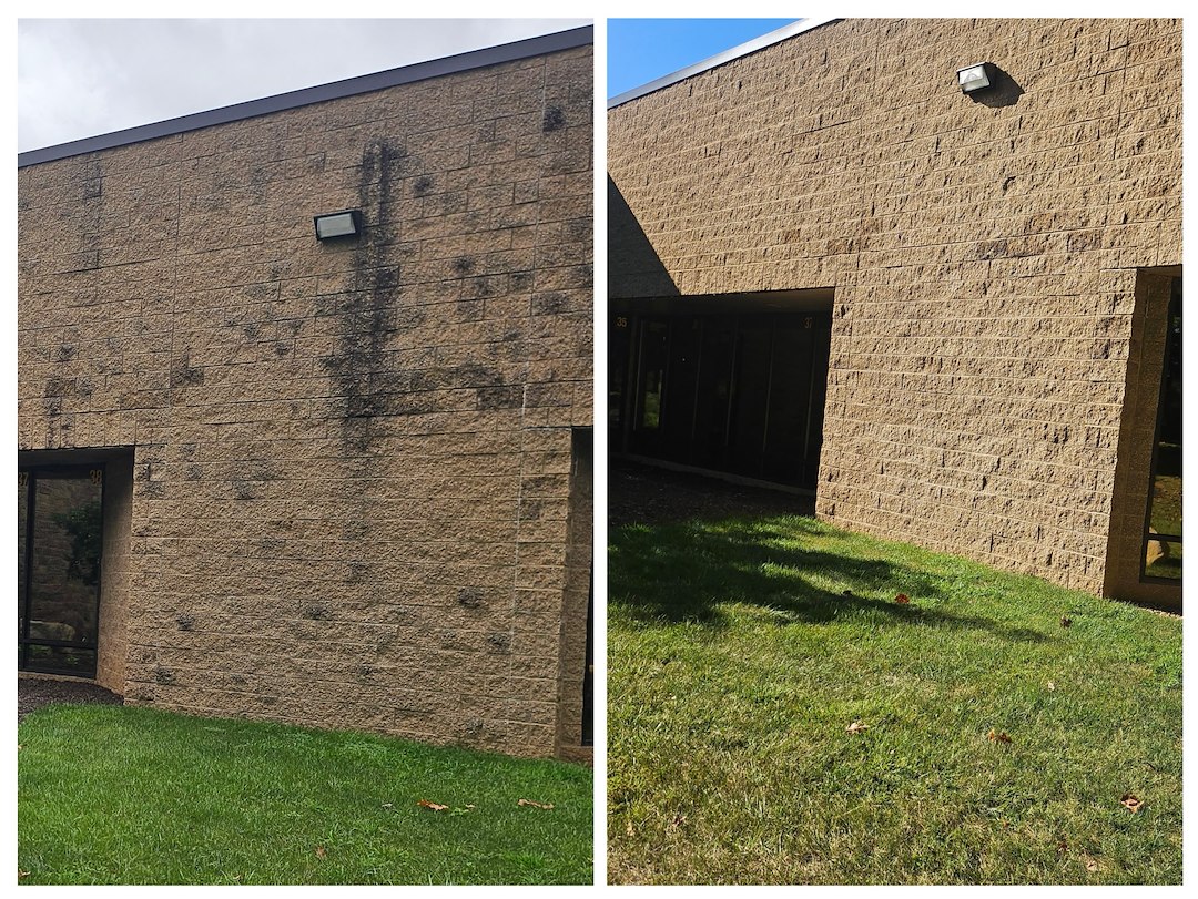 For this Bethlehem, PA project, we prioritized soft washing to protect the building's exterior surfaces. Unlike high-pressure methods, our soft washing service uses eco-friendly solutions to eliminate mold and algae at the root. It’s the most effective way to ensure a deep, long-lasting clean for any commercial property in the Bethlehem, PA area.